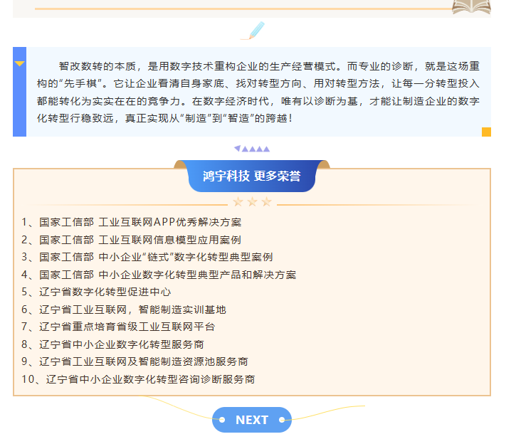 对企业而言,诊断报告是对接政府政策红利的“敲门砖”,凭借专业的诊断结果,企业能更高效申报智改数转补贴、贴息、试点项目,降低转型资金压力;对政府而言,通过诊断能精准掌握区域内企业的数字化转型现状,制定更具针对性的扶持政策,推动区域产业数字化升级;对服务商而言,诊断能让服务商精准匹配企业需求,提供适配的技术和解决方案,避免“技术与需求脱节”。三方以诊断为纽带,形成转型合力,让企业的数字化转型之路走得更顺、更远。