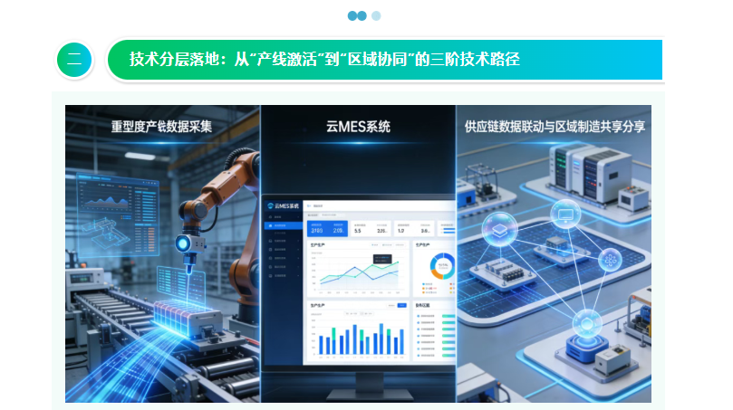 东北中小制造企业多为产业链配套型企业,数字化转型需贴合“为龙头配套、区域内协同”的生产特点,分三阶落地技术,不贪大求全,先激活产线、再优化流程、最后融入区域产业链,每一步都紧扣本土生产需求。