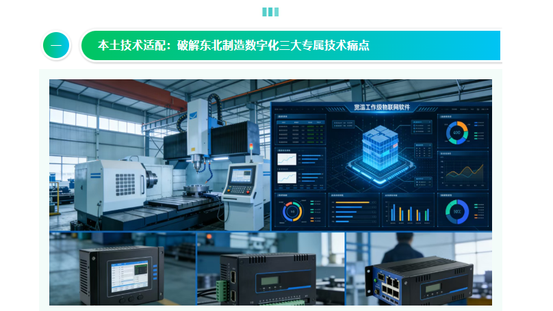 东北中小制造企业的数字化,难在“水土不服”——通用技术方案适配不了老旧设备占比高、生产场景偏重型、产业链集中在区域内的特点,技术落地第一步,必先解决本土专属痛点。