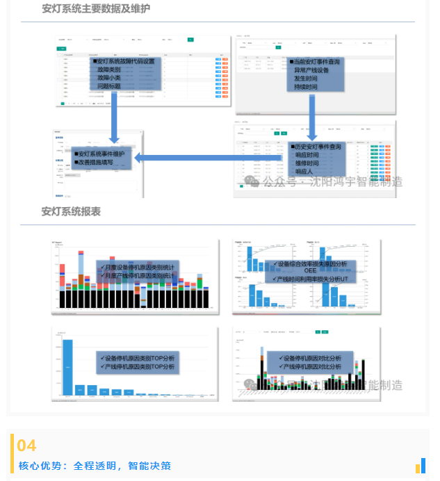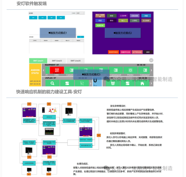 安灯系统:生产出现设备故障、物料短缺等异常,现场一键报警,警灯、看板实时联动,相关责任人多渠道收到通知,刷卡签到、全程记录处理过程,系统自动生成分析报表,让每一次异常都成为优化依据。